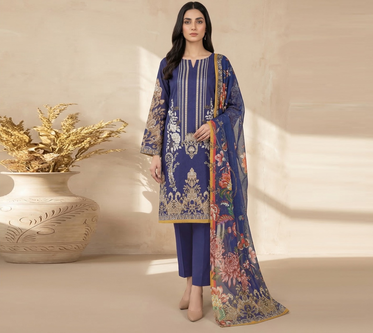 Digital Printed Lawn Shirt Digital Printed Lawn Dupatta Cambric Dyed Trouser